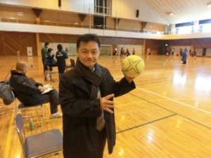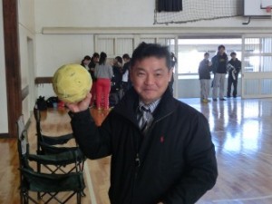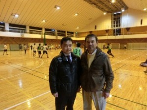 富士高ハンドボール初投げで小口富士市ハンドボール協会長とご一緒しました。