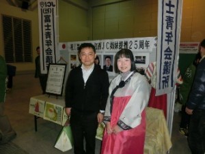 国際交流フェアにおいて、チマチョゴリを着ていた西原理事長とハイポーズ!