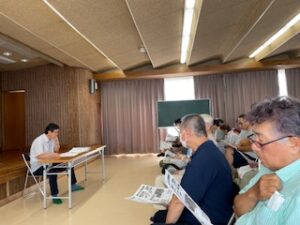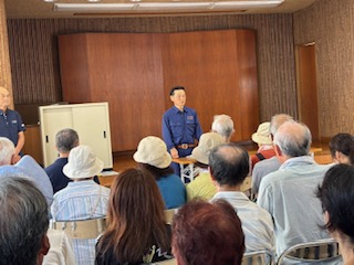 地区の防災意識向上を図るための防災講習として、町内会長が講師を担っていただき、自主防災活動についてわかりやすい説明をしてくれました。共助と言う点では災害時は役員だけではなく、一人一人が自主防災の役割を担う必要性が求められます。