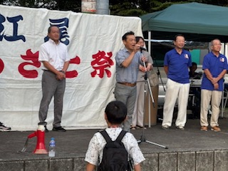 江尾区は水害で悩まされている地区でもあります。今年は今まで大きな被害は出ておりませんが、お祭りを通じての交流は災害時においても大きな力になると確信しています。運営に携わっている、私設消防をはじめ水防団の皆様には御礼申し上げます。
