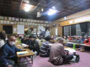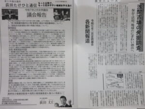 その際、2月議会も終わり、無事予算も承認され、新年度より予算が執行されていきますので、議会報告を配布させてもらいながら、地区に関わる予算や議会で取り上げている古墳について話しています。