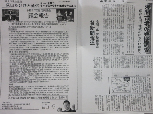 配布している議会報告には古墳について掲載されていますが、増川区の総会では、市の職員から、浅間古墳のある地区でもあるため、浅間古墳について発掘も含めこまかな説明がされていました。