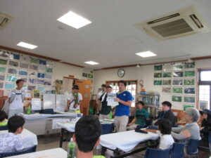 トンボ捕獲後は、浮島ヶ原自然公園のビジターセンターに場所を変えて、トンボの説明を、常葉大学の加須屋先生と自然観察会の小沢氏から受けました。大変暑い中でトンボの捕獲でありましたが、参加者の子供たちは目を輝かせながらトンボを追っかける姿は印象的でした。
