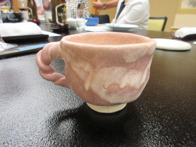 ろくろで造った湯飲みはもっと大きく作ったつもりでありますが、焼きあがると一回り小さくなっていました。自分で言うのもなんですが、色塗りが良いのかとても素敵です。また、コーヒーカップは思ったより可愛く素敵にできました。窯元での焼き物体験は貴重な経験でありましたが、焼きあがった作品を見て嬉しく思います。私が創った一点物で、価値がでるかも。良い記念になりました。でも、せっかく作った作品ですが、これでお茶とコーヒーを飲んでみようと思います。きっとおいしいと思います。
