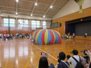 須津幼稚園児、中里保育園児のイベントでスタートしましたの、多くの保護者で体育館は一杯でした。体育館の1階,2階のエリアでのニュースポーツや体力テスト等スタンプラリー形式で回りながら、参加者はそれぞれに楽しんでいました。また、スタンプが一杯になると賞品が貰えます。
