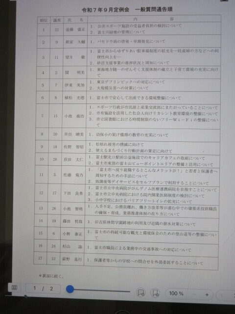 私も居住地区である増川区の訓練に参加ますが、朝、市の防災訓練の発令後、「大規模災害等に関する議員対応」として安否確認の届け出を居住地区のまちづくりセンターに午前9時までに出勤、また議員タブレットにラインワークス上で「無事です」の送信が決められています。また、地区においての訓練では、あらためて、「自主防災活動の手引き」、「災害時のトイレ対策」「富士市防災アプリ」の確認、また、市で行っている「関電ブレーカー設置補助金」や「家具固定推進事業」等の周知もありますので挨拶の際に発信したいと思っています。