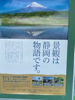 富士山地域景観協議会は静岡県の富士山周辺と県が連携して富士山の良好な景観の守り祖てる事を目的に活動する組織だそうです。協議会組織として富士山周辺6市3町(沼津市、三島市、富士宮市、富士市、御殿場市、清水町、長泉町、小山町)と静岡県で構成されています。活動としては、眺望スポットの案内。野外広告物の脱却キャンペーン。景観形成ワークショップ等で富士山の普遍的な価値を守り、後世に引き継いでいく役割を担っています。富士市は、富士山がきれいに見えるまちです。富士山百景や富士山ビューポイントの整備も進めています。
