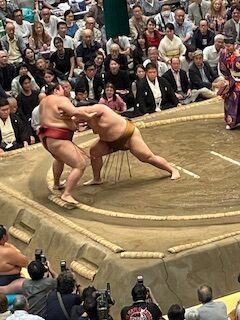 その後、両国国技館で行われている大相撲9月場所10日目を観戦に。