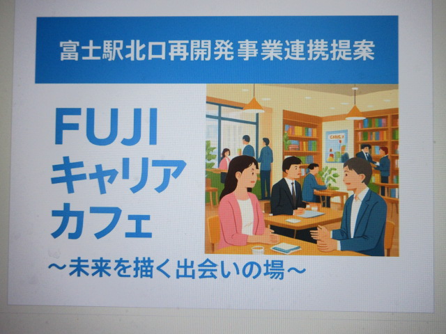 9月議会10月8日午前10時に登壇します。2項目しますがその1項目に「富士駅北口駅前公益施設でのキャリアカフェの取組について」があります。