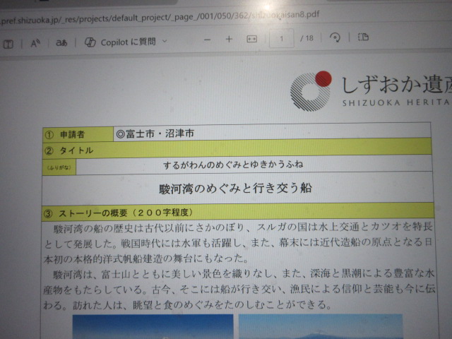 令和7年度の「しずおか遺産」に富士市と沼津市にある文化財でストーリーをつくり申請していた「駿河湾のめぐみと行き交う船」が認定されたことが5日に報道されました。