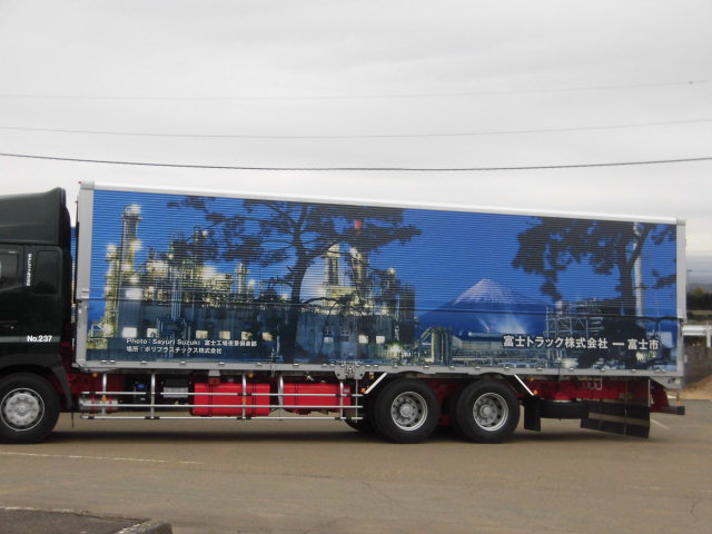 新たにトラックを提供してくれた会社は、富士運送さん、船村興産さん、富士トラックさんの3社です。富士トラックさんのトラックには、富士山と工場夜景がペイントされており、写真の提供は、工場夜景倶楽部さんからでした。