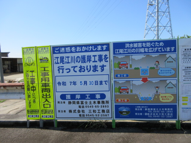 その他に江尾江川護岸への排水ポンプ置き場の工事が行われていますが、出水期にはしっかり稼働できるように間に合わせてもらいたいと感じます。本年において、今行われている対策も含め今まで行っている対策が少しでも効果が出るよう願いたいと感じます。