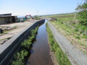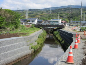 GWが終われば梅雨が近づいてきますので、出水期を前に水害常襲地である東部地域の江尾江川の対策状況を確認してきました。現在、県が行っている江尾江川拡幅工事が5月31日まで行われています。