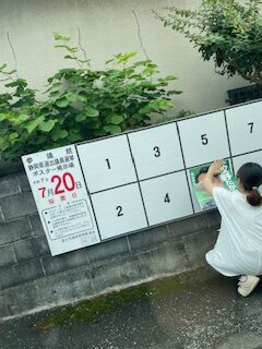 なんでも一番が好きな私は地域のポスター張りも朝一番に終わらせています。
