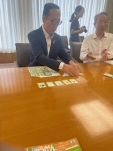 この寄付につきましては、前警察署の中村署長から、富士市ではネット犯罪も多く、幼児期より正しい生活習慣を身につけさせ、デジタルデバイス(スマホ、タブレット、PC等々)に対して、幼児期よりルールを守らせて健やかに成長させるためのツールとして、「しゅうかんゲーム」を防犯協会で制作し市内全部の幼稚園、保育園に普及促進させるために力を貸して頂きたいと私の団体に要望がありそれに賛同しての支援となりました。