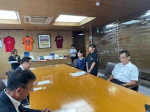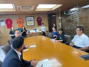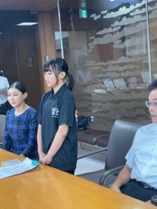 7月20日に行われた全日本女子相撲岐阜大会において、わんぱく相撲クラブ所属の富士見台小学校6年生佐藤はんなさんが準優勝しました。その報告を小長井市長にするために表敬訪問しましたので顧問として同席させて頂きました。