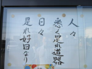 いつも、掲示された言葉をお寺での教えとして参考にさせて頂いています。ただ、恥ずかしながら今回、悉くの字が読めませんでした。悉くの読み方を調べたら悉く(ことごとく)です。読み方がわかったのでありがたいお言葉は、「人々是れ悉く道器 日々是れ好日」中国唐時代の雲門宗の開祖である雲門文偃禅師の言葉です。言葉の意味は、「人々悉く道器なり」とは、あらゆる人々はお釈迦様のみ教えを備えるに足りる器を持っている」という意味だそうです。また、「日々是れ好日 」この言葉を文字通りに解釈すれば「毎日が平安で無事なる日である」、「楽しく平安な毎日が続く」と言う意味ですが、単に「毎日がよい日である」というのでは禅的解釈にはなりません。多くの人は「来る日も来る日もよい日でありますように」と願い、無事を願っています。しかし現実は、その願いの通りにはいかず、毎日好き日が続くわけではありません。雨の日、風の日があるように様々な問題が起きます。しかし、どんな雨風があっても、日々に起きる好悪の出来事があっても、この一日は二度とない一日です。かけがえの無い一日であり、この一日を全身全霊で生きることができれば、まさに「日々是れ好日」となるのです。言い換えれば、常に今日という日をかけがえのない大切なものとして過ごすことが重要だというお示しだそうです。