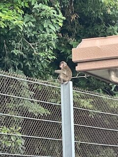 お寺の近くの民家にサルが出没しています。