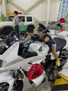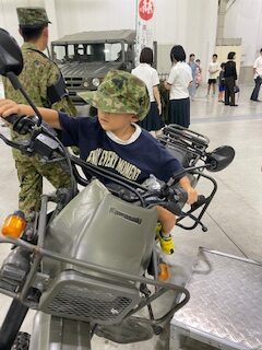 開会式後、孫に連れられて予約不要の働く車エリアに直行し、白バイや自衛隊の車両に乗車。