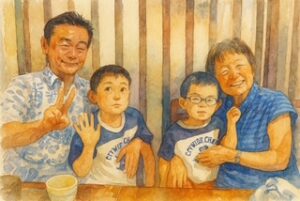 孫と子供から、母を含めて敬老の祝いをやりました。