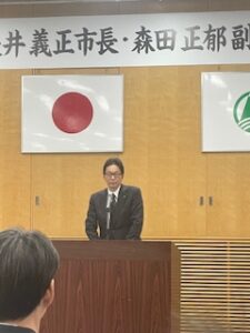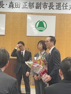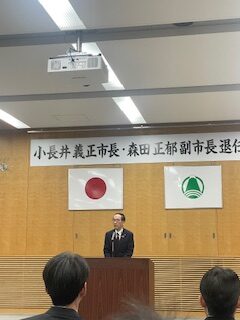小長井市長の3期12年の市長職の退任とそれに伴い森田副市長の退任の2人の退任式が16日行われましたので参加してきました。