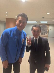 新たなスタッフが紹介され楽しく和やかに親睦が図られる中で、選挙戦に突入した三島青年会議所出身の候補者、細野氏が挨拶に来てくれました。