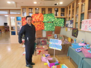 孫に言われて朝一番から幼稚園の作品展に行く。