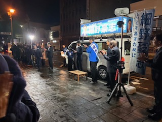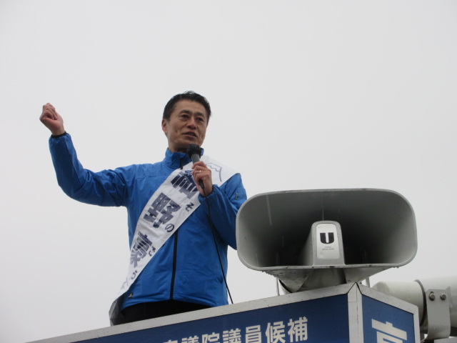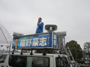 細野氏の午前中雨にうたれながらの富士市での最後のお願い。