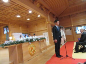 三日市浅間神社の紀元祭には金指市長も参加していました。その際に、歴史が好きである事や神社を通してつながりの大切さを述べていました。+
