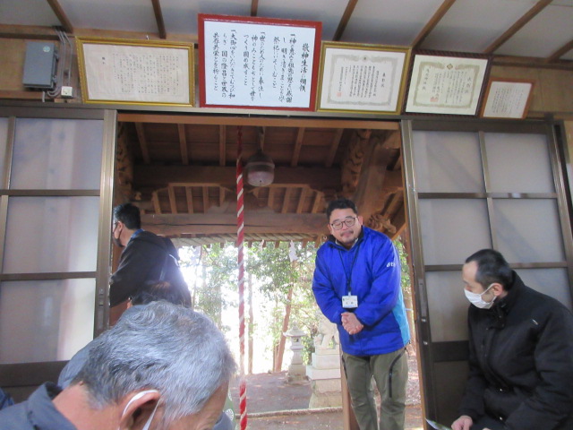 地域には八幡神社、浅間神社があり氏子が行う行事にも参加しています。2月は、三日市浅間神社の節分祭、紀元祭、天長祭、地域の祈年祭と神社行事があります。既に節分祭、紀元祭の神事に参加しており、地域の祈年祭の神事にも参加しました。