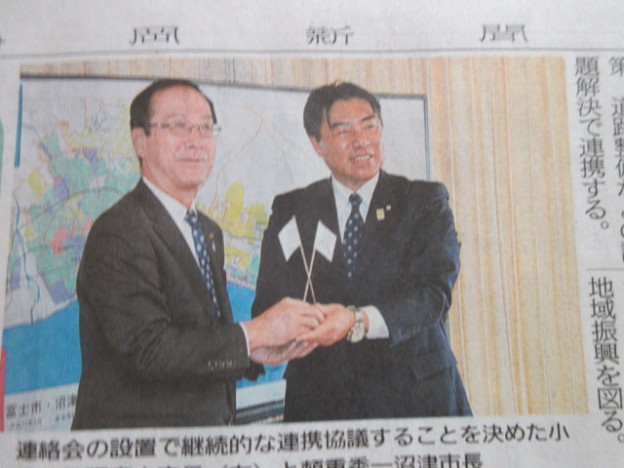 この事は頼重市長が市議会議員時代から小長井市長と意見交換はしており富士市東部の活性化を図る上では、重要なことで広域的な水害対策、地域の利便性向上での広域道路インフラ整備、沼津市立病院との医療連携、田子の浦港を活かすうえでの貨物ヤード整備、歴史や自然を活用してのまちづくり等々での連携は重要な事であります。