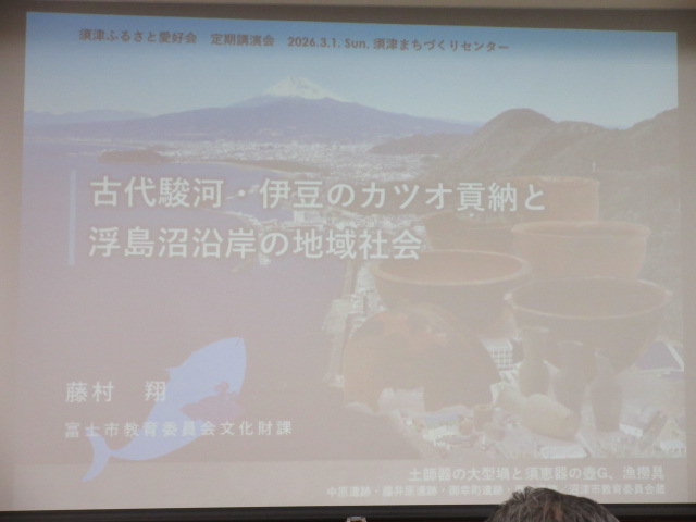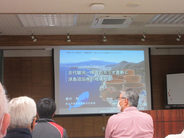 そのふるさと愛好会で定期的に行われている勉強会で、「古代スルガ、伊豆国のカツオ貢納と浮島沼沿岸の地域社会」について文化財課の藤村氏が講演を行われました。