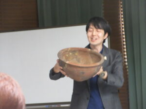 千人塚古墳で発掘された土器が、カツオの加工に使われていたものであり、浮島沼周辺を中心に広がっていき王権への本格的なカツオ貢納が行われてきた歴史について知る事ができました。改めて、古墳から出土されたものからわかる歴史にロマンを感じました。