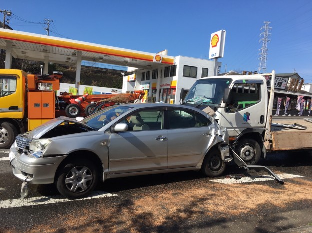 沼津インターのグルメ街道の交差点で信号待ちをしていた時に、大型トラックに突っ込まれ多重衝突で前後の車に挟まれてのサンドイッチ状況での大事故でありました。私は委員会があったためにその場に駆けつけられませんでしたが、その様子はテレビでも放映されるほどの事故でありました。